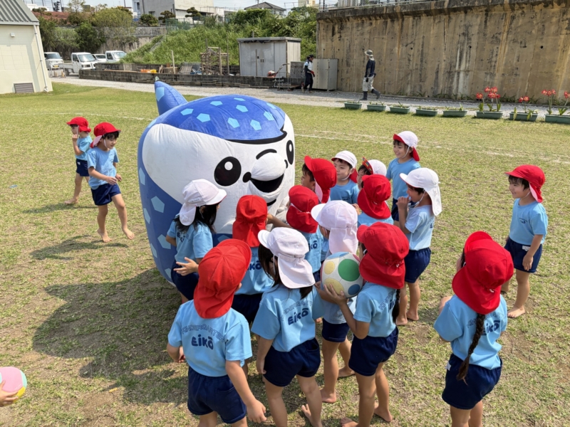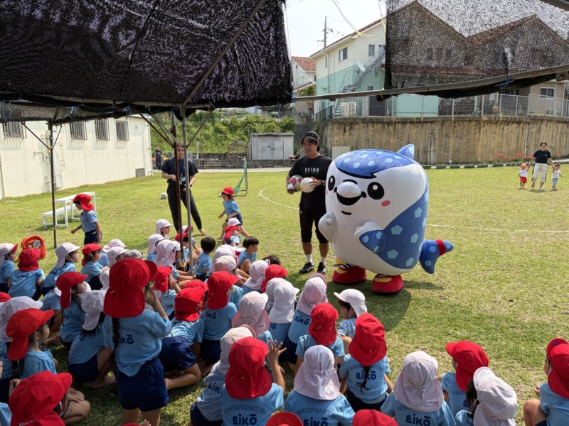 TOP 〉 BLOG 〉 栄光幼稚園 〉 ジンベーニョが来た❗️ 栄光幼稚園 ジンベーニョが来た❗️ 2026.04.14 FC琉球のマスコット「ジンベーニョ」が栄光幼稚園に遊びに来てくれました。 ちょっと寝坊してきたジンベーニョでしたが、みんなとサッカーしてくれたり、質問に答えてくれたり楽しく遊んでくれました。 園児さんも喜んでましたが、先生たちも大喜びでした! 次はスタジアムで会おうね! みんなでFC琉球を応援しましょう! PREV