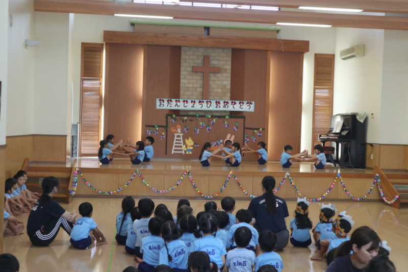 TOP 〉 BLOG 〉 名護栄光幼稚園 〉 誕生会 名護栄光幼稚園 誕生会 2025.09.29 今日は、9月生まれの誕生会でした。 8月生まれでお休みしていた園児さんも一緒にお祝いし、 喜び溢れた時となりました😊 毎月誕生会は職員や年長組さんがプレゼントを披露します。 今月は年長さんが担当🎁 かっこいい体操を披露してくれました✨ すぐにでも運動会ができそうですね 笑! お誕生日のおともだち、おめでとうございます♬ PREVNEXT