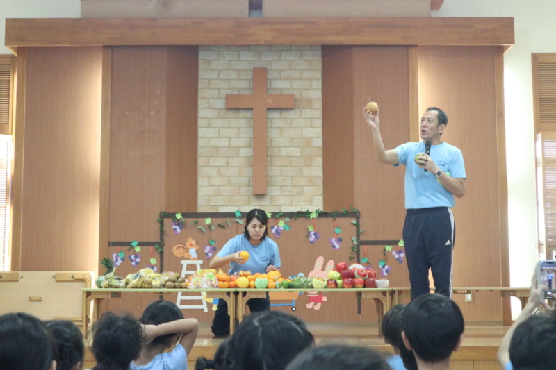 ご家庭から果物を提供していただき、神さまの恵みに『ありがとう』を形に表す礼拝をお捧げしました✨